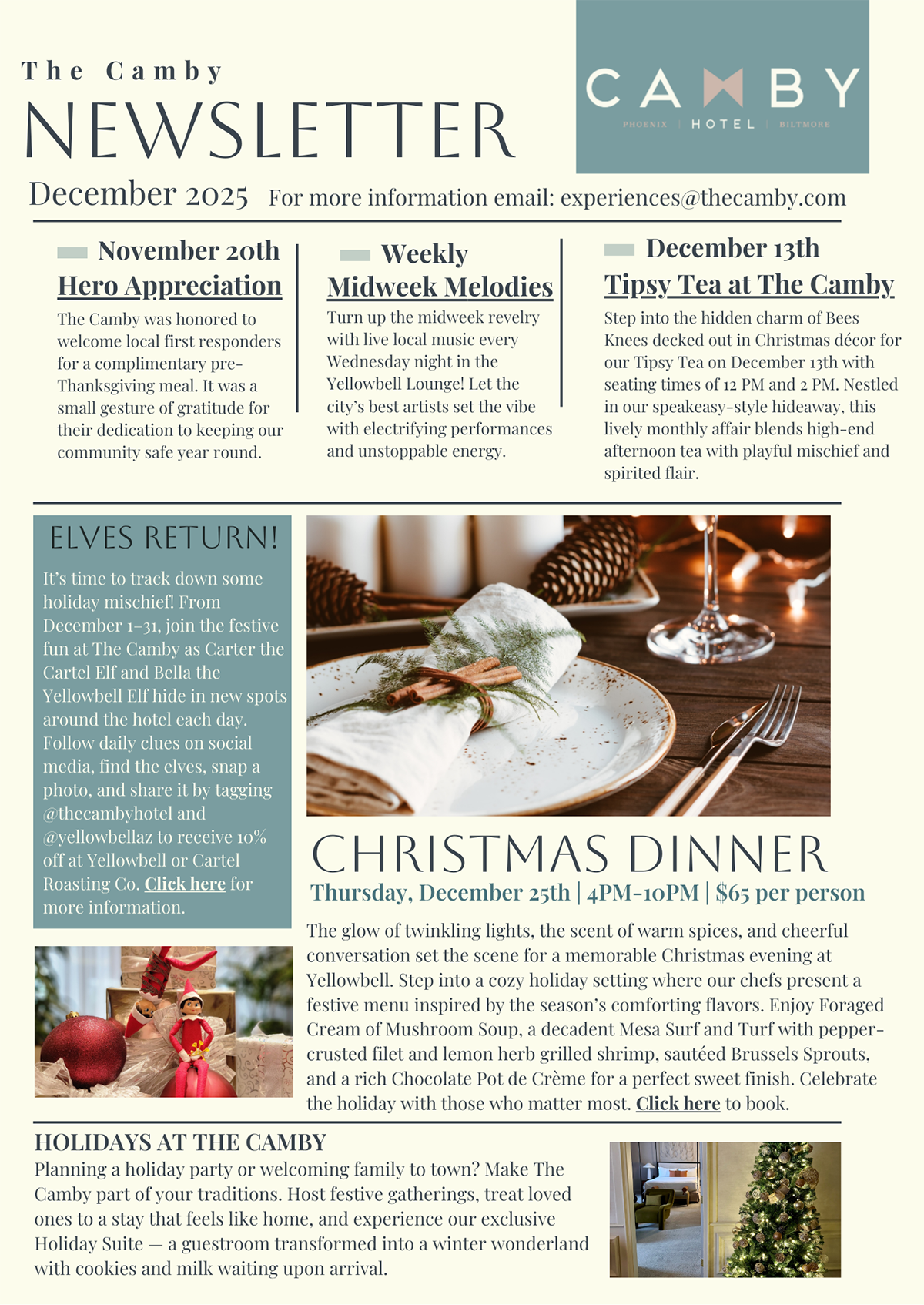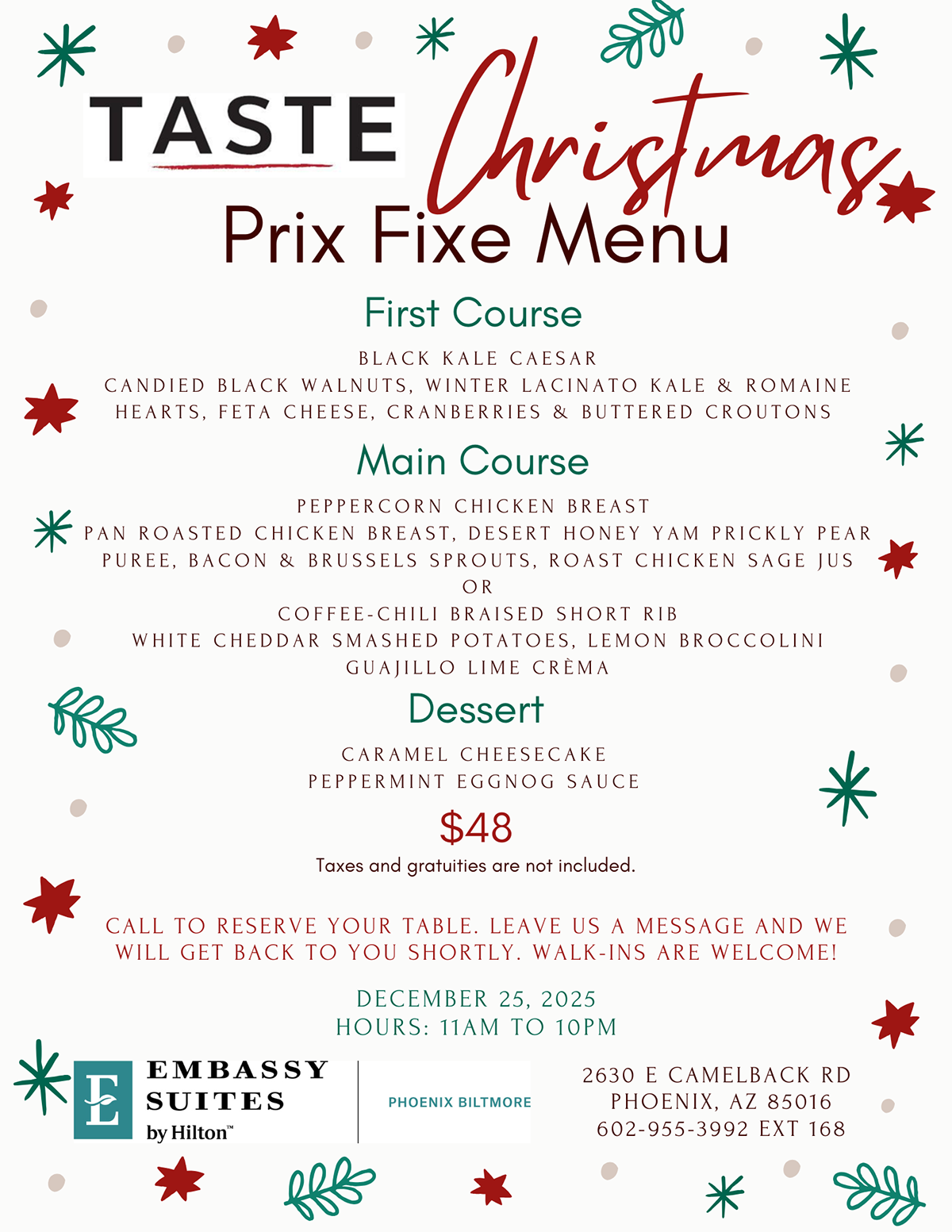 This Christmas, let the Arizona Biltmore be your gathering place for flavor and festivity. Experience the bold spirit of the holidays at Renata’s Hearth, where Latin-inspired dishes capture the warmth and vibrance of the season, or cozy up at McArthur’s for elevated holiday classics and a festive Christmas Brunch designed to comfort and delight. An exquisite way to dine, connect, and celebrate Christmas in true Arizona Biltmore style.